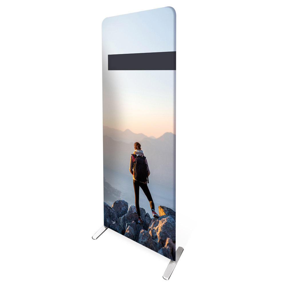 Der Aufsteller ZIPP ECO mit den Maßen B 80 cm x H 200,9 cm x T 37,8 cm ist die ideale Lösung für kompakte Präsentationsflächen bei Events, Messen und im Point-of-Sale-Bereich. Das hochwertige Zipper-Stecksystem ermöglicht einen schnellen Aufbau in wenigen Minuten.