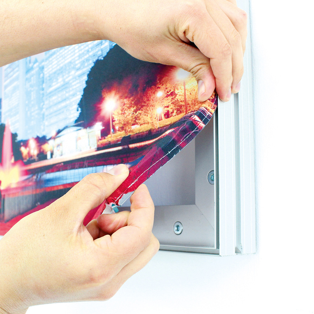 Textilspannrahmen Stele freistehend von RD-Druckshop in Osterrönfeld, Rendsburg, Kiel, Neumünster, Schleswig und Flensburg, die sich ideal zur Präsentation im Point-of-Sale, auf Messen oder Events eignen.