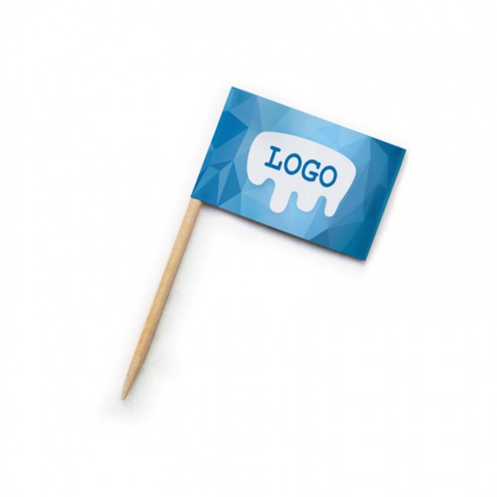 Zahnstocher mit Fähnchen | ca. 7 cm | beidseitig bedruckt von RD-Druckshop aus Osterrönfeld, Rendsburg, Kiel, Neumünster, Schleswig und Flensburg mit Ihrer Werbung oder Ihrem Logo bedruckt.